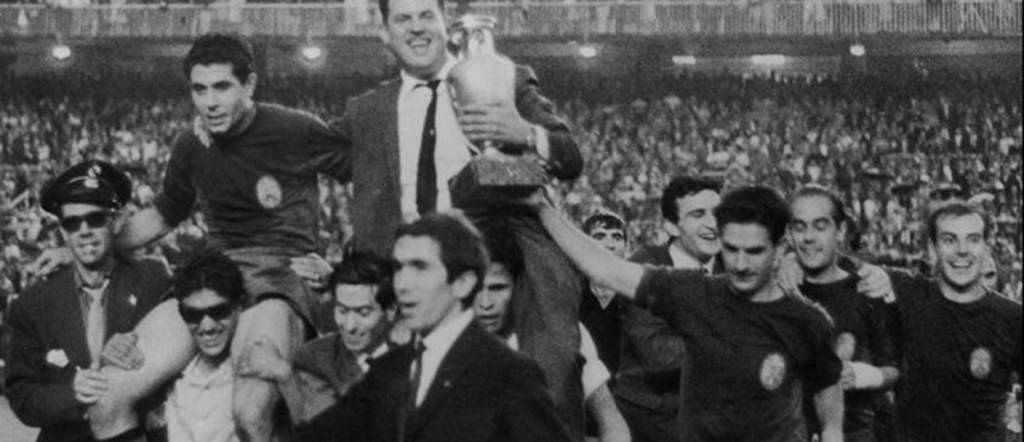 La finale est donc une revanche du match qui n’a pas eu lieu 4 ans plus tôt. Sur un fond politique énorme bien sûr. Les deux pays n’ont pas le droit de perdre, dans un Santiago Bernabeu archicomble. C’est un match âpre, tendu qui aura lieu. La star de l’équipe espagnole, Luis Suarez ancien joueur du Barça mais évoluant à l’Inter Milan championne d’Europe au moment de la finale ne s’illustrera pas. Lev Yachine encore dans les buts soviétiques à peine plus. Finalement la différence ne se fera qu’à 5 minutes de la fin, lorsque Martinez catapulte le ballon au fond des filets. C’est du délire, l’Espagne composée en majorité de joueurs du Real Madrid, du FC Barcelone, de l’Atletico Madrid ou de l’Athletic Bilbao est championne d’Europe. Les Soviétiques ratent le doublé et l’ont un peu mauvaise. Le sélectionneur déclare d’ailleurs que les Espagnols ont « simuler des blessures pour obtenir des fautes » tandis que Ivanov estime que le deuxième but espagnol est « dû à la chance ». Quoiqu’il en soit, l’Espagne remporte le deuxième Euro, mais qui ne restera pas dans les annales. Cependant le public était au rendez-vous en témoigne cette finale